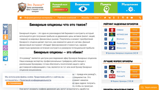 Janson, у меня похожая ситуация, но я воспользовался Binarium (для уничтожения своих денег). Сайт eto-razvod.ru врёт везде, даже реальные отзывы о мошенниках удаляют, а статьи все заказные, видимо. Честно говоря, я доверился мнению сайта eto-razvod.ru из-за статей разоблачающих других мошенников, а как оказалось, рекламируют они тоже мошенников, но других. Короче, не ведитесь на eto-razvod.ru, потому что это развод!!!
