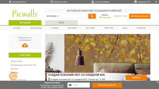 Фотообои от компании "Picwalls" мне очень нравятся, покупала уже их в компании второй раз, на сайте очень большой выбор их на любую тематику. Цены весьма демократичные, печатают их и доставляют очень быстро, качество печати на высоте, обои легко клеить, покупала их в спальню и кухню. Сейчас планирую в комнате поклеить обои. Спасибо большое!